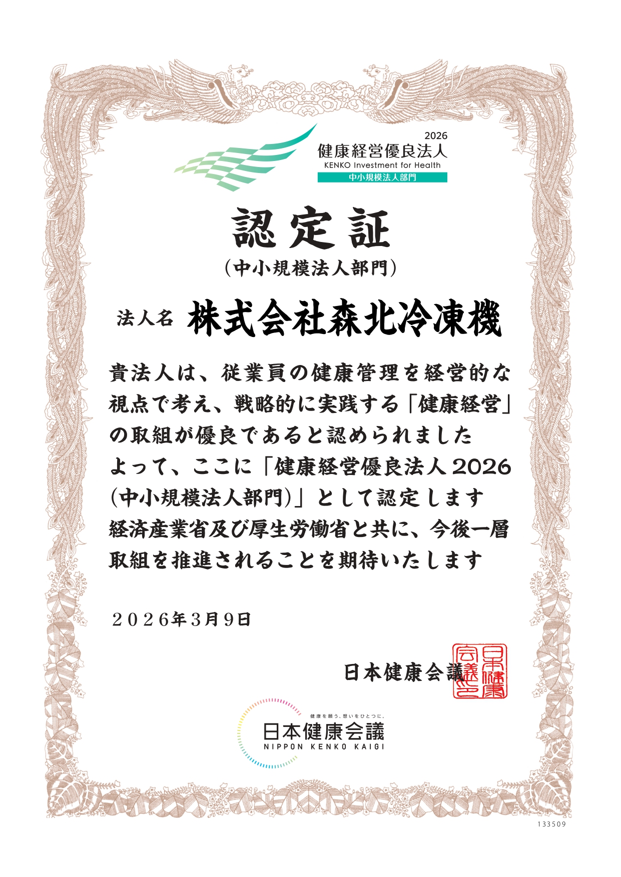 健康経営優良法人2026の認定を受けました